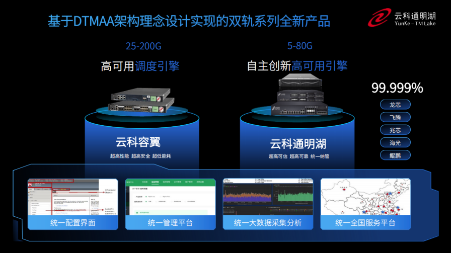 同时,为了更好的适配双轨超高可用架构,凯发k8官网推出了容翼系列和云科通明湖信创系列两大应用交付控制器产品。