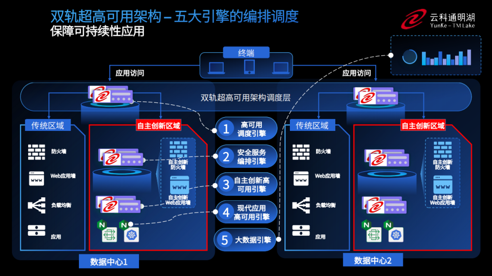 为实现双轨超高可用架构信创区和非信创区的跨域协同,实现信创区域和非信创区域的平滑过渡,凯发k8官网顺利获得五大引擎实现多层次的应用可持续性。